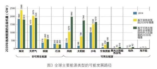 這份報(bào)告的核心結(jié)論之一就是,如果全球經(jīng)濟(jì)一直朝著無碳化的方向發(fā)展,到2030 年,風(fēng)電必將成為主力電源。國(guó)際可再生能源署認(rèn)為,海上風(fēng)電的總裝機(jī)在2030 年將達(dá)到100GW,但如果能夠從政策層面使可再生能源在全球能源結(jié)構(gòu)中的占比翻番,那么到2030 年海上風(fēng)電的裝機(jī)規(guī)模有望進(jìn)一步擴(kuò)大——風(fēng)電總裝機(jī)將達(dá)到1990GW,其中海上風(fēng)電占280GW。